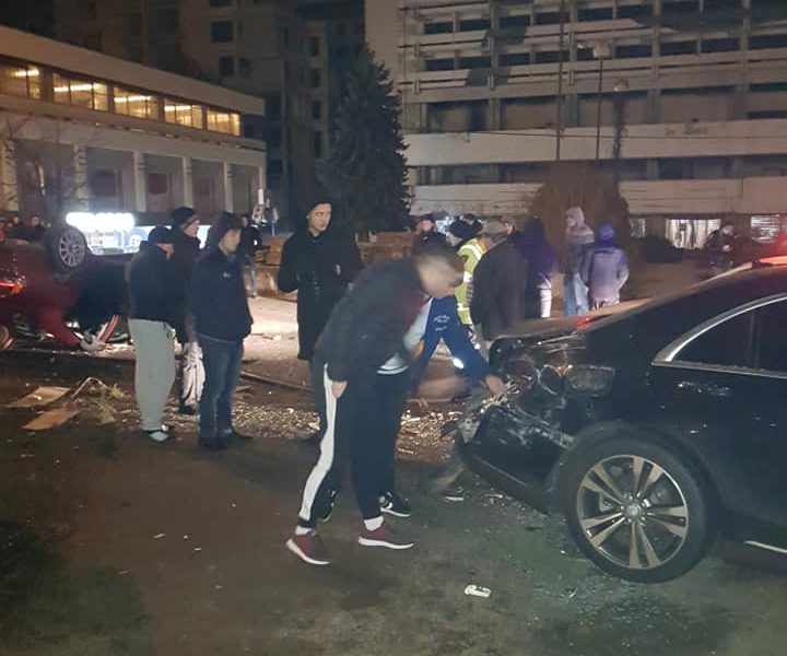 Groaznic accident în centrul Capitalei. Un șofer a derapat de pe traseu și s-a izbit în alte două autoturisme parcate pe marginea drumului.