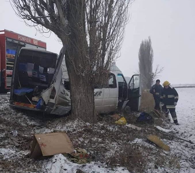 /FOTO/ Accident cu patru persoane rănite. Microbuzul de pe ruta Gura Galbenei – Chișinău, în care se aflau victimele, avea pneurile uzate.