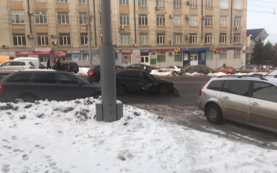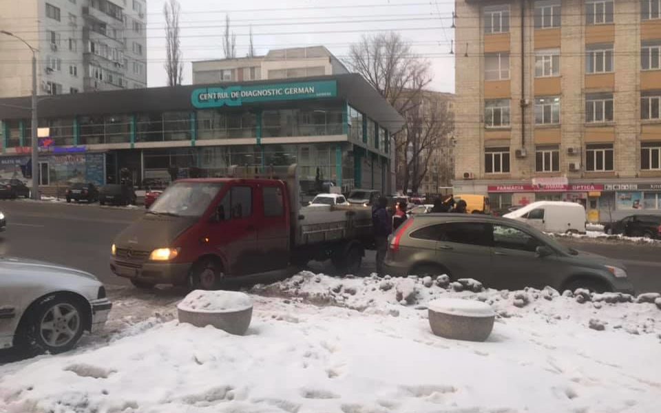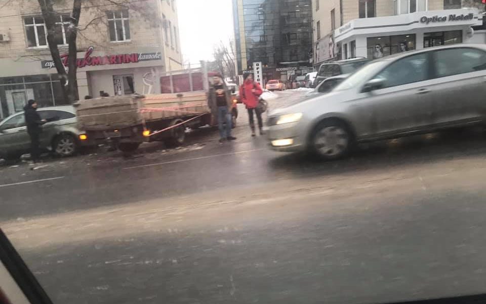 Grav accident pe strada Constantin Negruzzi din Chișinău. Un camion mergea cu spatele, când, la un moment dat a lovit violent o mașină.