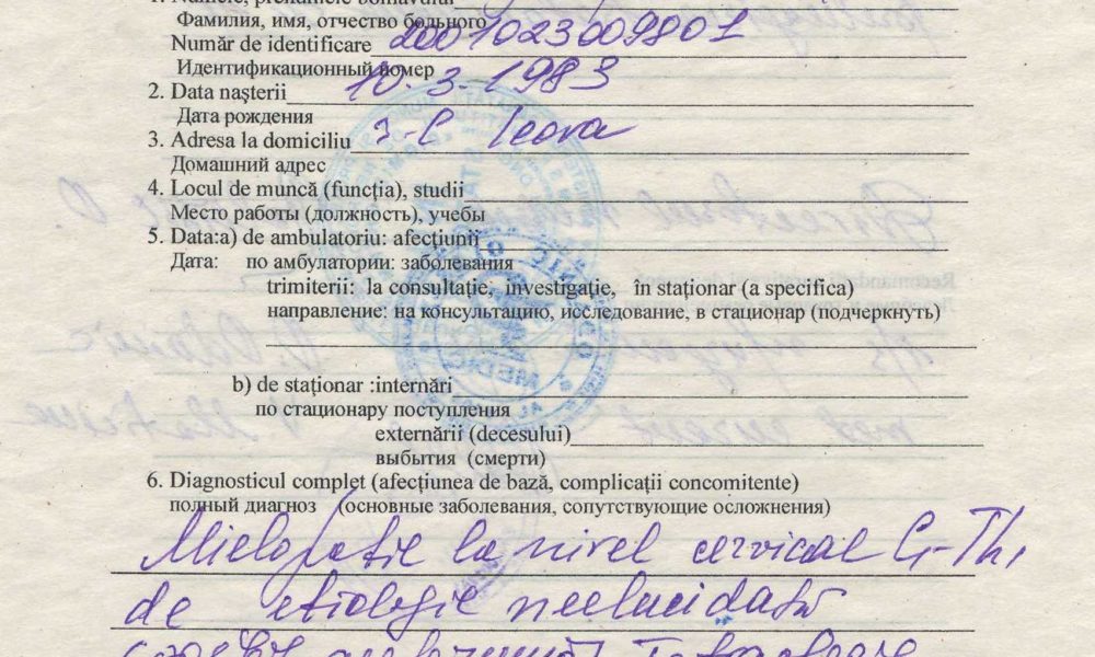 Anatol Profir, tânărul de 35 de ani din Leova, care în ianuarie 2019 a suferit un micro insult, provocat de Mielopatia cervicală (Mielopatia cervicală este pierderea treptata a funcției nervoase cauzata de diverse tulburări care afectează coloana vertebrala), cere ajutorul nostru.