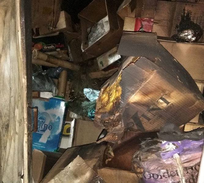 Focul a distrus podul, pereții apartamentului, dar și o parte din pereții din hol. Din fericire, proprietara casei nu a pățit nimic.
