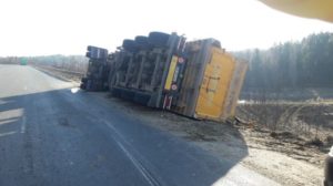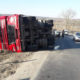 Un camion încărcat cu 22 tone cu seminţe de floarea soarelui s-a răsturnat în apropiere de localitatea Fundul Galbenei din Hânceşti.