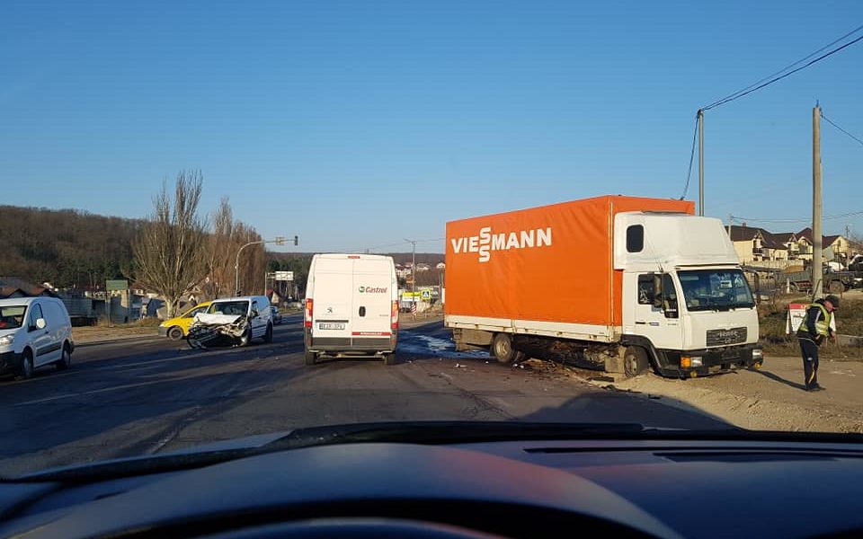 Un autotursim și un camion au intrat în coliziune. Imaginile de după accident au fost plasate pe o rețea de socialziare. Din imaigni se poate observa că imapctul a violent, încât partea din față a automobilului a fost distrusă complet, iarcamionul a ajuns pe acostament.