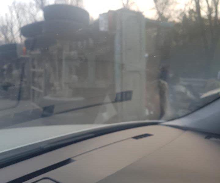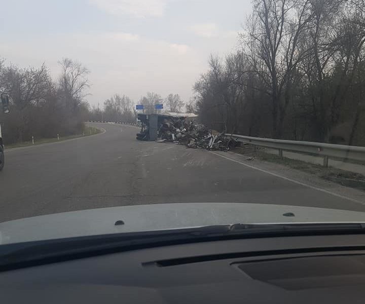 Imaginile de la locul impactului au fost postate pe o rețea desocializare. Din imagini se vede camionul răsturnat, dar și un morman imens se fiare, împrăștiat pe șosea.
