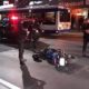 /FOTO/ Un pieton care traversa strada cu o trotinetă, accidentat de un motociclist
