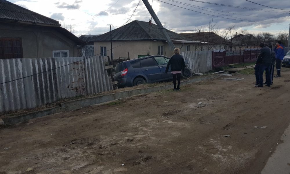 O depășire neregulamentară putea provoca o tragedie. Două mașini s-au tamponat violent. Lovitura a fost atât de puternică încât unul dintre automobile s-a izbit într-un stâlp, a doborât un gard și a ajuns în ograda unei gospodării.