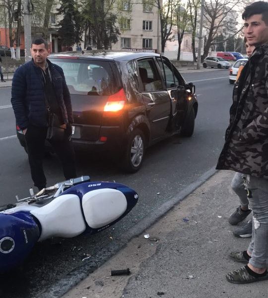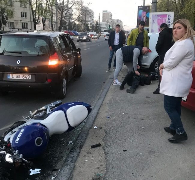 /VIDEO/ Un motociclist a ajuns la spital, după ce s-a izbit violent într-o mașină, pe strada Kiev din Capitală