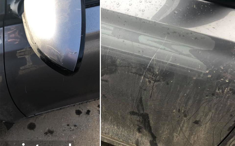 Potrivit mărturiilor unui locatar, el a găsit mașina deteriorată care a fost parcată lângă un club sportiv. Martorii spun că acesta a fost un câine de rasă imens.