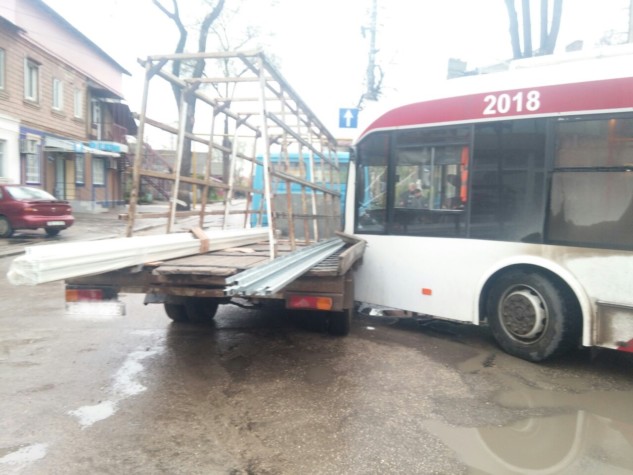 Accident rutier la o intersecție din orașul Bălți. Un troleibuz cu pasageri s-a ciocnit într-un autocamion de model Mercedes. Din fericire nimeni nu a avut de suferit.
