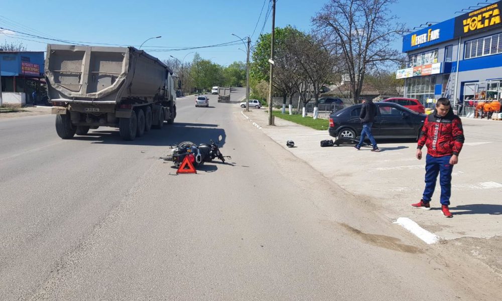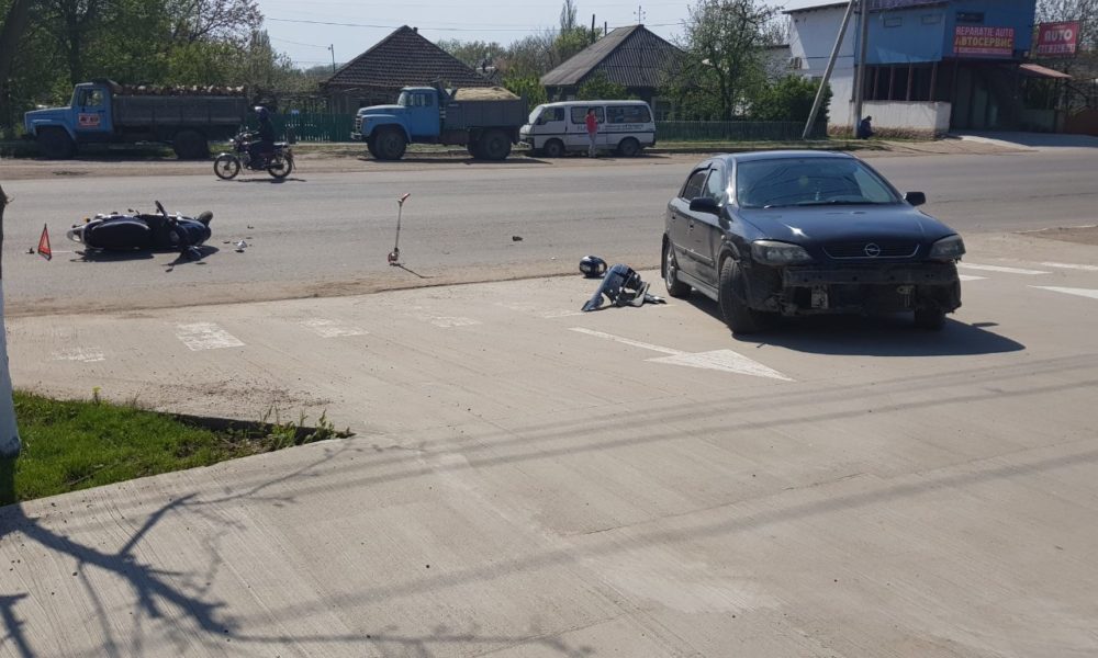 Grav accident de circulație în orașul Ungheni. O motocicletă s-a tamponat violent cu un automobil.