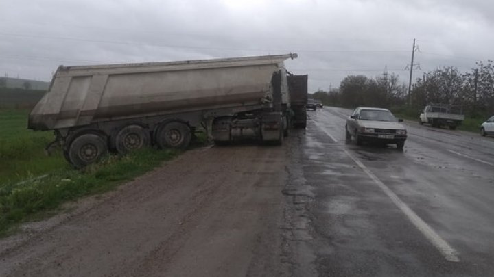 /FOTO/ Accident violent la Bălți. Un TIR s-a tamponat cu o mașină, după care a derapat de pe carosabil