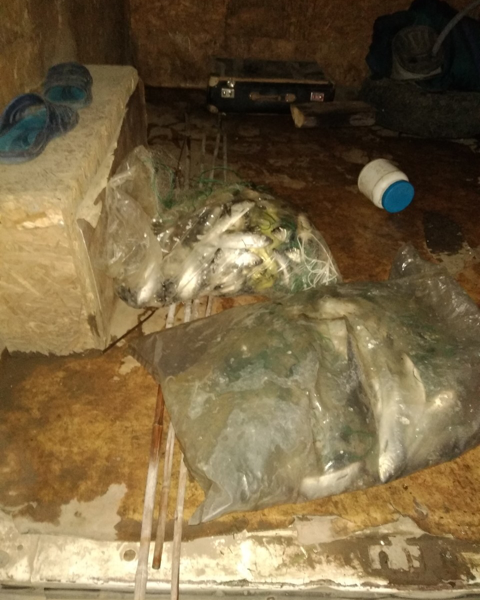 Totodată, au ridicate patru plase monofilament, unelte interzise pentru pescuit, cu o lungime de 170 metri şi o barcă gonflabilă.