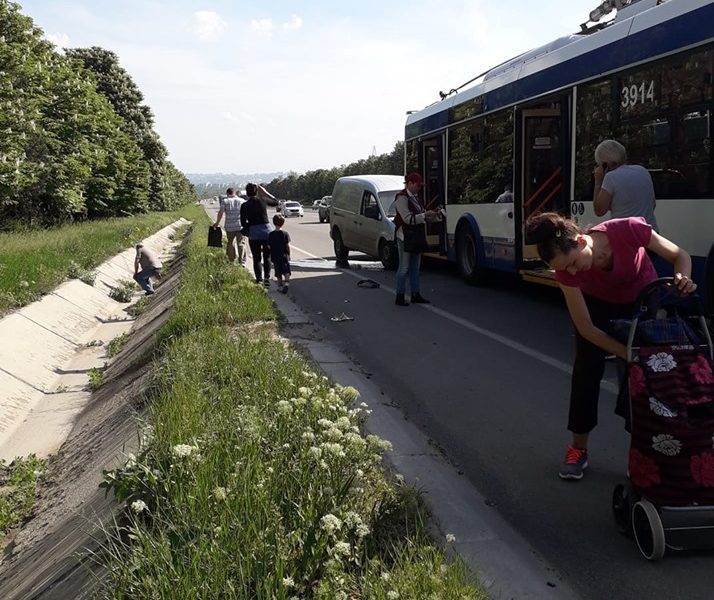 Totul s-a întâmplat în data de 17 mai, în timp ce troleibuzul se deplasa spre Stăuceni. Imaginile de la fața locului au fost postate pe o rețea de socializare.