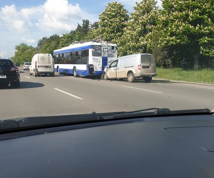/VIDEO/ Un troleibuz plin cu pasageri, implicat în accident, în apropiere de Stăuceni