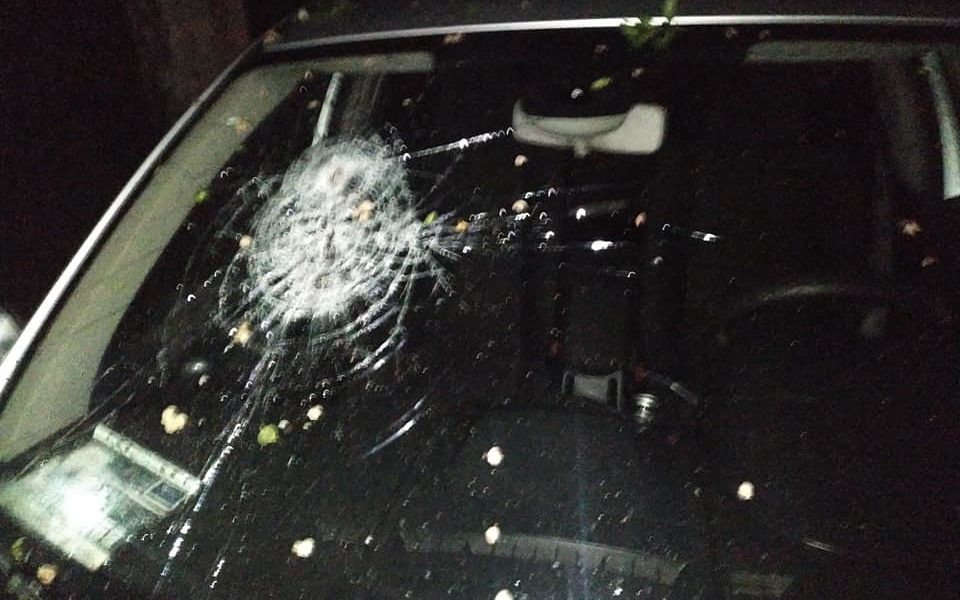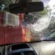 /FOTO/ Un șofer și-a găsit parbrizul spart după ce o TIGAIE a zburat direct în autoturismul său