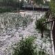 Grindina a distrus o gradină, iar apa curge șiroaie, distrugând culturile agricole.