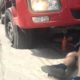 Totul s-a întâmplat în data de 11 iunie, pe strada Opt Martie din cartierul Poșta Veche din Chișinău. Imaginile de la fața locului au fost postate pe o rețea de socializare. Din imagini se vede cum roțile au nimerit în niște gropi, create în asfalt.