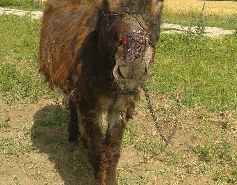 /FOTO/ Măgar plin de sânge și legat în lanțuri, depistat la Taraclia. Proprietarul riscă o amendă usturătoare.