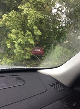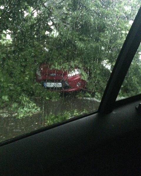 /FOTO/ Un pom s-a prăbușit peste un automobil. Acesta a fost parcat la umbra, însă din cauza rafalelor de vânt a fost doborât peste vehicul