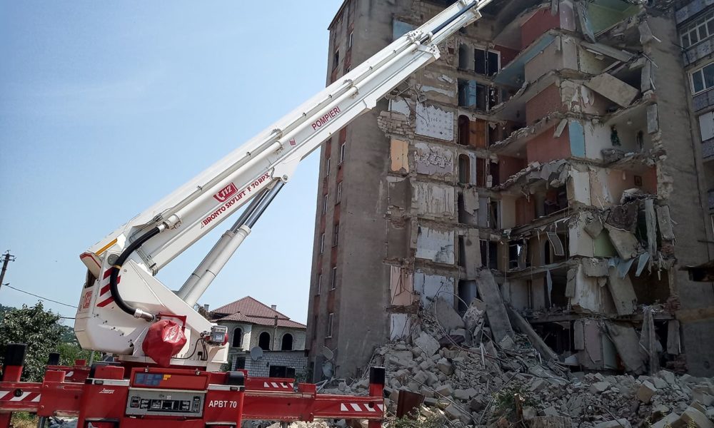 În dimineaţa zilei de 21 iunie, angajaţii IGSU au reluat lucrările în prejma blocului avariat din oraşul Otaci. Salvatorii au misiunea demontării plăcilor de beton, care atârnă de pe blocul avariat.