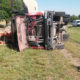 Minute de panică pentru un șofer de autocamion, în vârstă de 29 de ani. Acesta a pierdut controlul asupra volanului și s-a răsturnat cu vehiculul său de mare tonaj pe acostamentul de la marginea drumului.