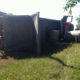 /VIDEO/ Camion cu bonine de metal, răsturnat