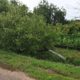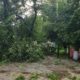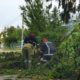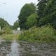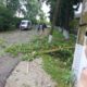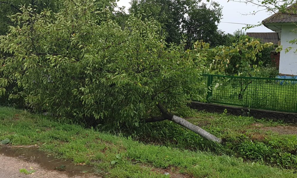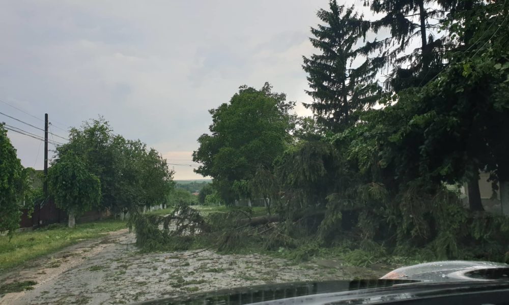Vântul a pus la pământ firele electrice și a spălat asfaltul de pe drumuri. Un brad de 50 de metri înălțime a fost smuls din rădăcini și a blocat un drum din sat. Acum, la faţa locului lucrează echipe de la Spaţii Verzi pentru a evacua crengile şi copacii doborâţi.