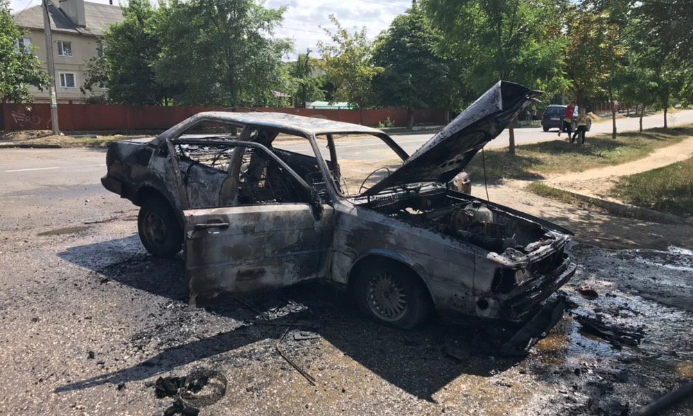 /FOTO/ O mașină a luat foc în centrul orașului Taraclia. Automobilul a ars în totalitate.