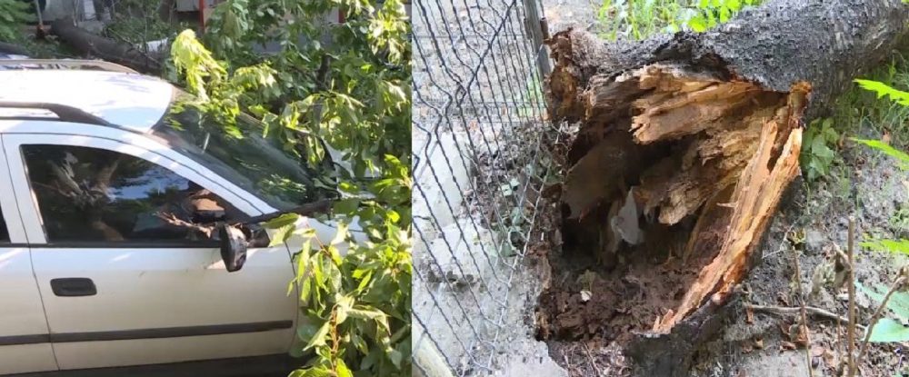 La faţa locului a venit şi proprietarul unui automobil avariat. Acesta spune că a fost anunţat de către vecini despre faptul că a căzut copacul peste maşina sa.