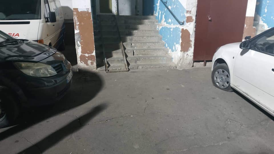 /FOTO/ Un șofer s-a pomenit cu roțile sparte după ce a blocat intrarea într-un bloc de locuit