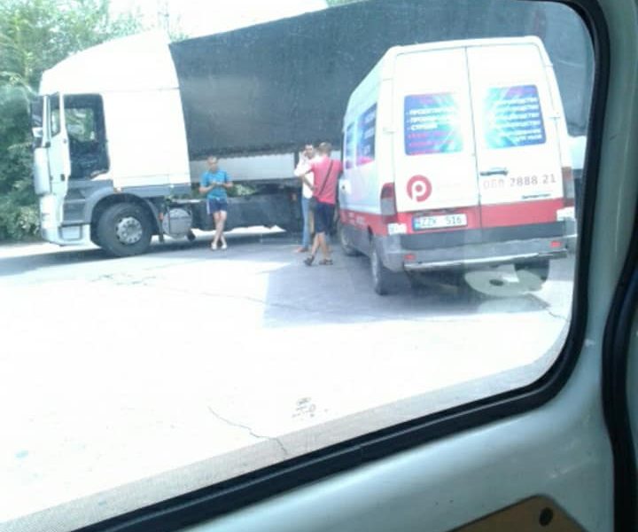 /FOTO/ Accident pe strada Calea Basarabiei. Un camion s-a tamponat cu un microbuz.