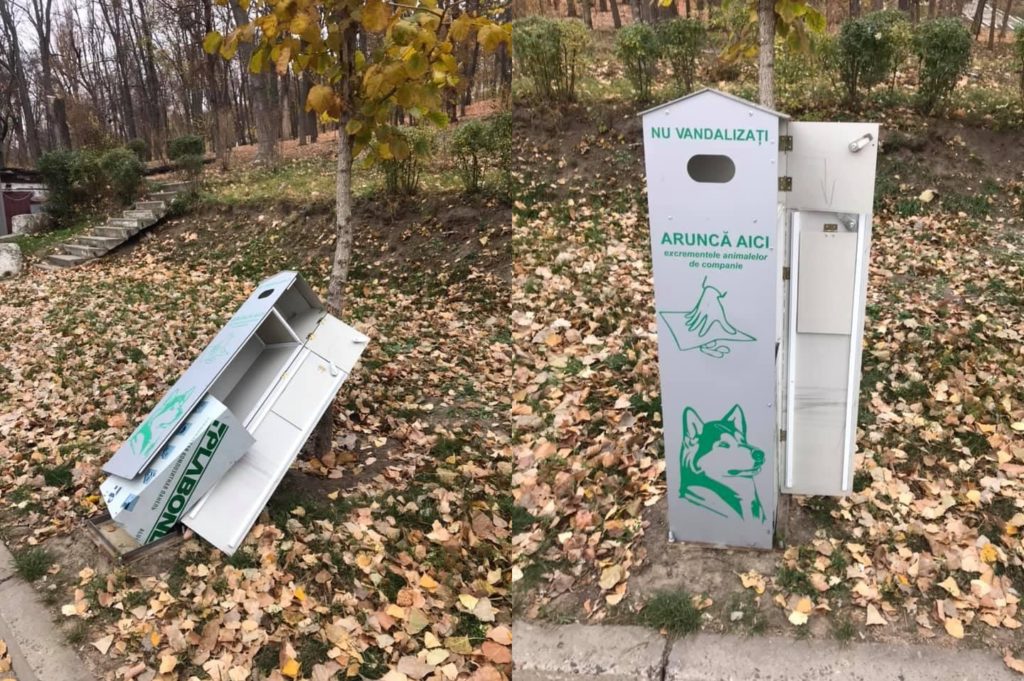 /FOTO/ Mai multe pubele pentru excrementele animalelor, vandalizate în Parcul Valea Morilor