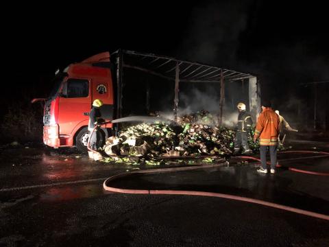 /FOTO/ В Каушанах потушили загоревшийся на ходу грузовик с семенами подсолнечника