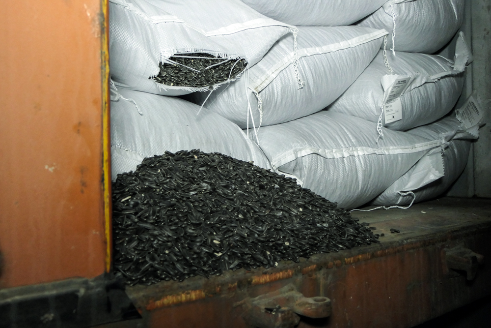 /FOTO/ Schemă de contrabandă dată peste cap: 34 de tone de semințe de floarea soarelui, reținute