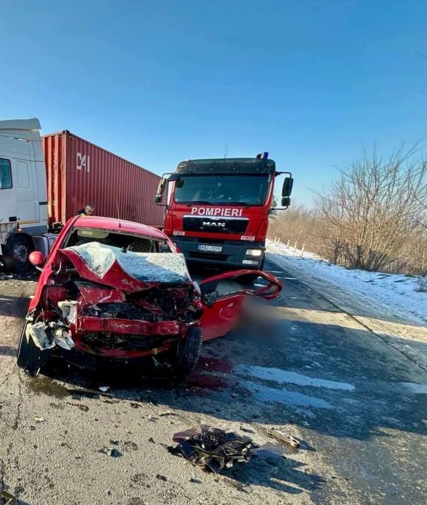 Potrivit poliției, șoferița a intrat din motive care urmează a fi stabilite, pe contrasens și s-a tamponat frontal cu un camion, la volanul căruia se afla un bărbat de 35 de ani.