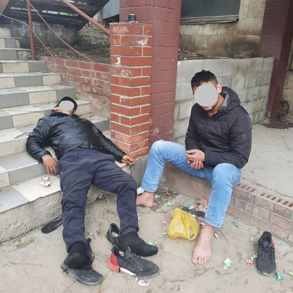 /FOTO/ Doi tineri, prinși drogați, pe o stradă din Chișinău. Unul din ei nu se putea ține pe picioare