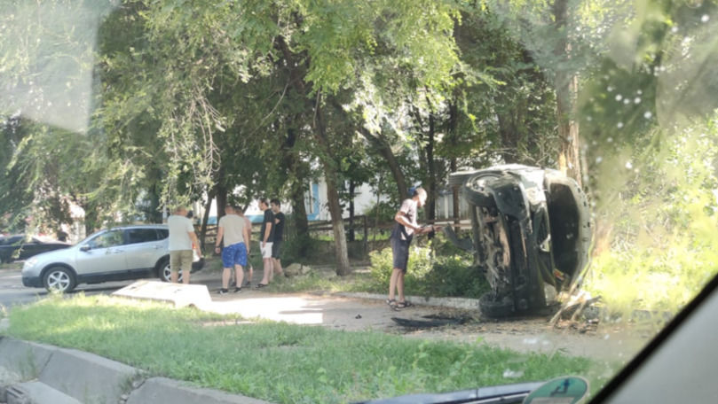 /FOTO/ Accident cumplit în capitală: Două automobile s-au tamponat violent. Una dintre mașini s-a inversat