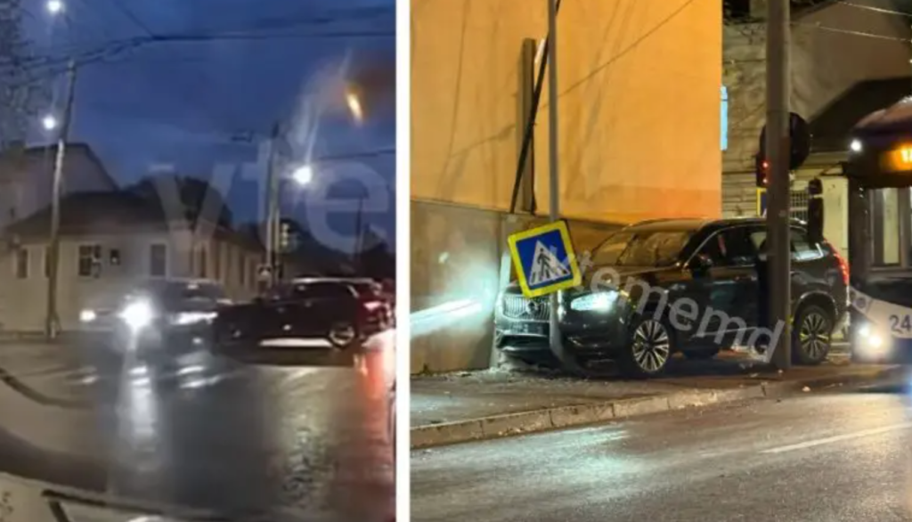 Accident rutier violent la intersecția străzilor Ismail și 31 August din Chișinău. Două automobile – o Skoda și un Volvo – s-au ciocnit violent, iar momentul impactului a fost surprins de o cameră de bord, instalată în mașina unui automobilist.