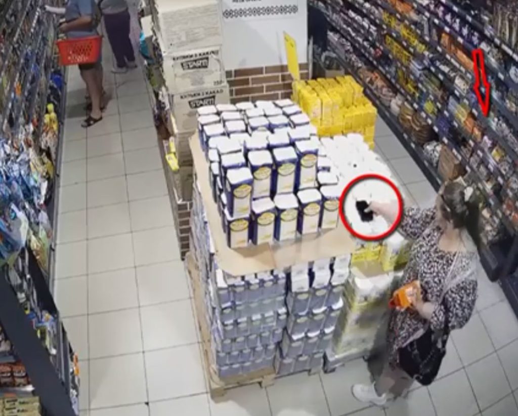 Camerele de supraveghere instalate în supermarket au surprins momentul furtului, iar în imagini se poate observa o femeie care analizează utilajul lăsat nesupravegheat, îl ia, iar apoi continuă să facă cumpărături.
