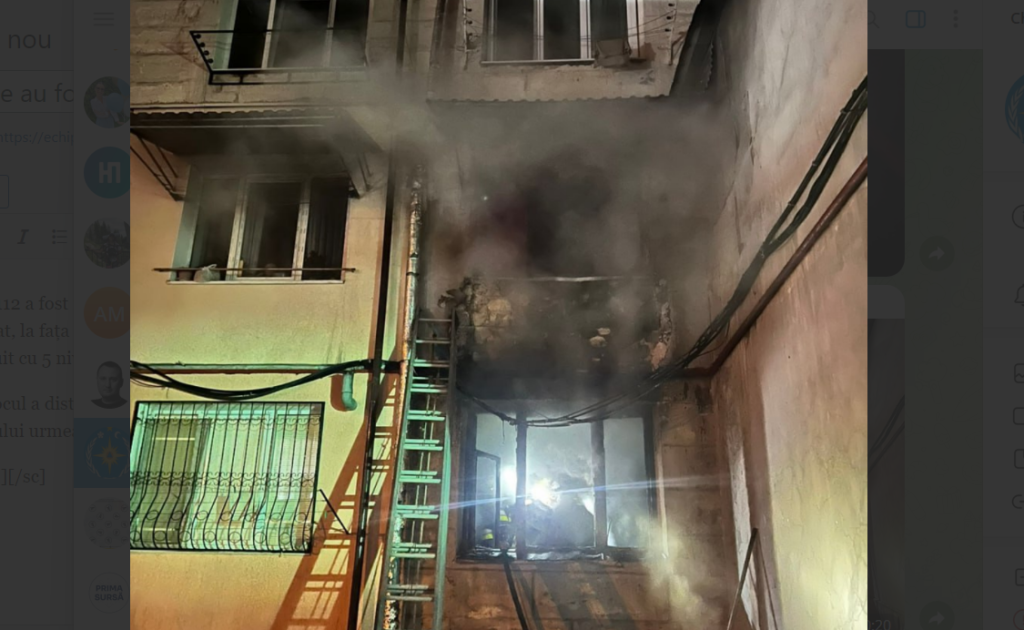 Apelul la Serviciul 112 a fost recepționat în jurul orei 02:45. Potrivit primelor informații a fost observată flacără deschisă de la geamul unui apartament. Imediat, la fața locului au intervenit 3 echipaje de salvatori și pompieri. Ajunși, aceștia au stabilit că incendiul a izbucnit la etajul 1 al blocului de locuit cu 5 nivele.