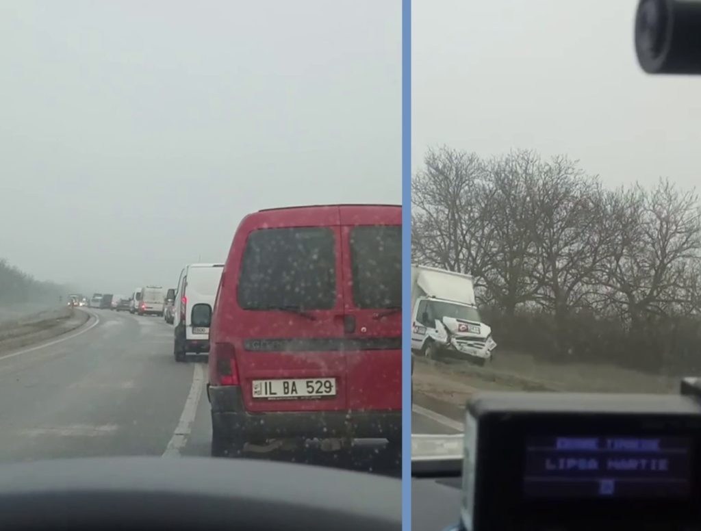 Prin urmare, în zonă s-au format ambuteiaje, iar unele vehicule au derapat și au ajuns pe acostament, avariate!