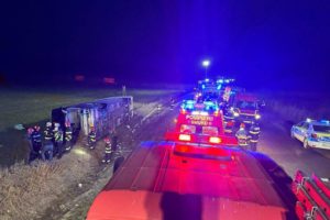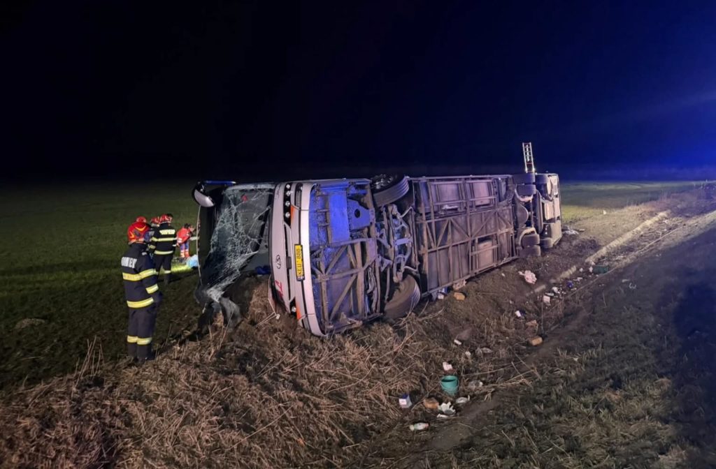 Plan roșu în județul Vaslui: Un mort și 15 răniți după ce un autocar din Chișinău s-a răsturnat în România.
