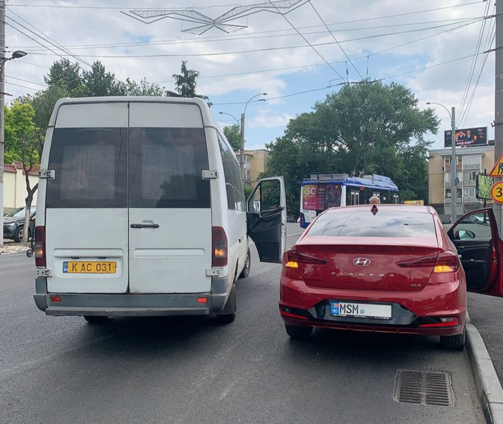 /VIDEO/ Chișinău: Șoferul unui microbuz a provocat un accident, fiind în stare de ebrietate, și a adormit la volan până la venirea poliţiei