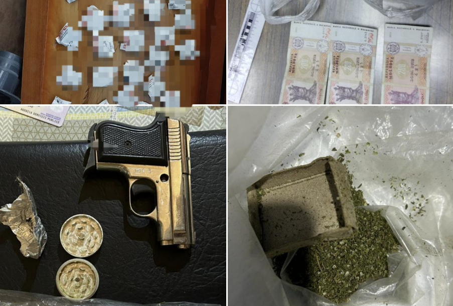 În alt caz, în cadrul măsurilor speciale de investigație, în localitatea Sofia din raionul Hîncești a fost reținut un bărbat de 28 de ani, asupra căruia polițiștii au depistat marijuana, obiecte pentru fărâmițarea drogurilor și telefoane mobile.