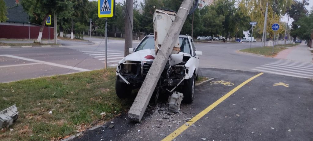 /FOTO/ A urcat băut la volan și a intrat cu mașina în stâlp. Un șofer din Ungheni riscă să rămână fără permis