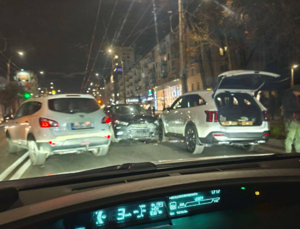 Moldovao zi în urmăAccident periculos în Chișinău: Troleibuz surprins cum trece pe roșu și lovește un automobil