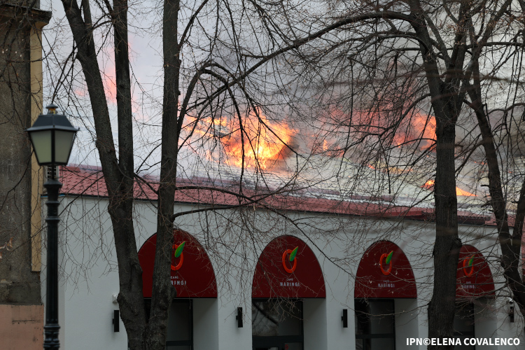 Incenciul a izbucnit în jurul orei 10:30, la acoperișul unui restaurant amplasat în imediata apropiere a străzii pietonale Eugen Doga. Zeci de oameni s-au pomenit a fi martori ai incendiului, astfel că oamenii legii sosiți la fața locului au evacuat toate persoanele și au încercuit zona. Potrivit IGSU, în timpul incendiului nici o persoană nu a avut de suferit.