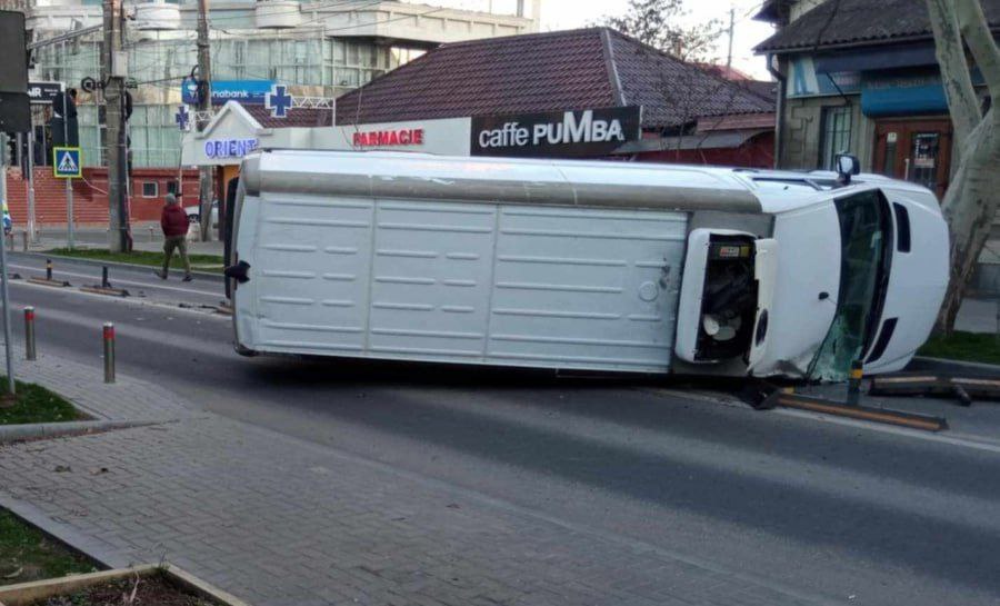 Accident grav în capitală. Un microbuz s-a răsturnat, după ce s-a tamponat cu o mașină.