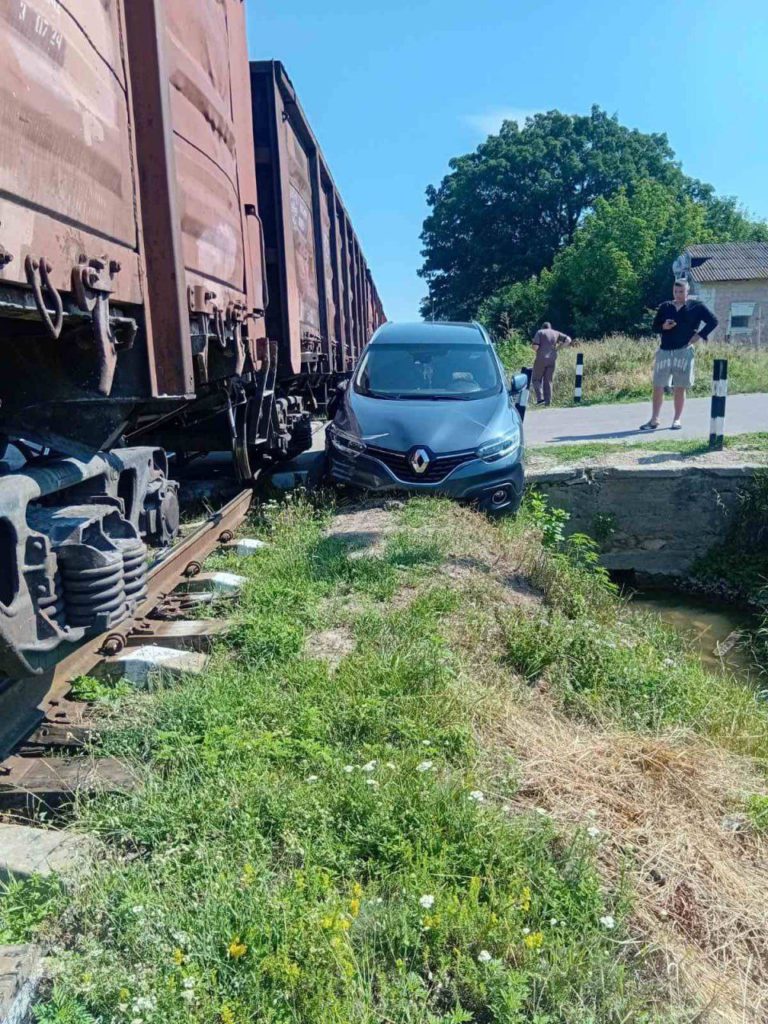 Însă, în acel moment, o locomotivă se deplasa pe linie și a izbit autoturismul. Din fericire, impactul nu s-a soldat cu victime.