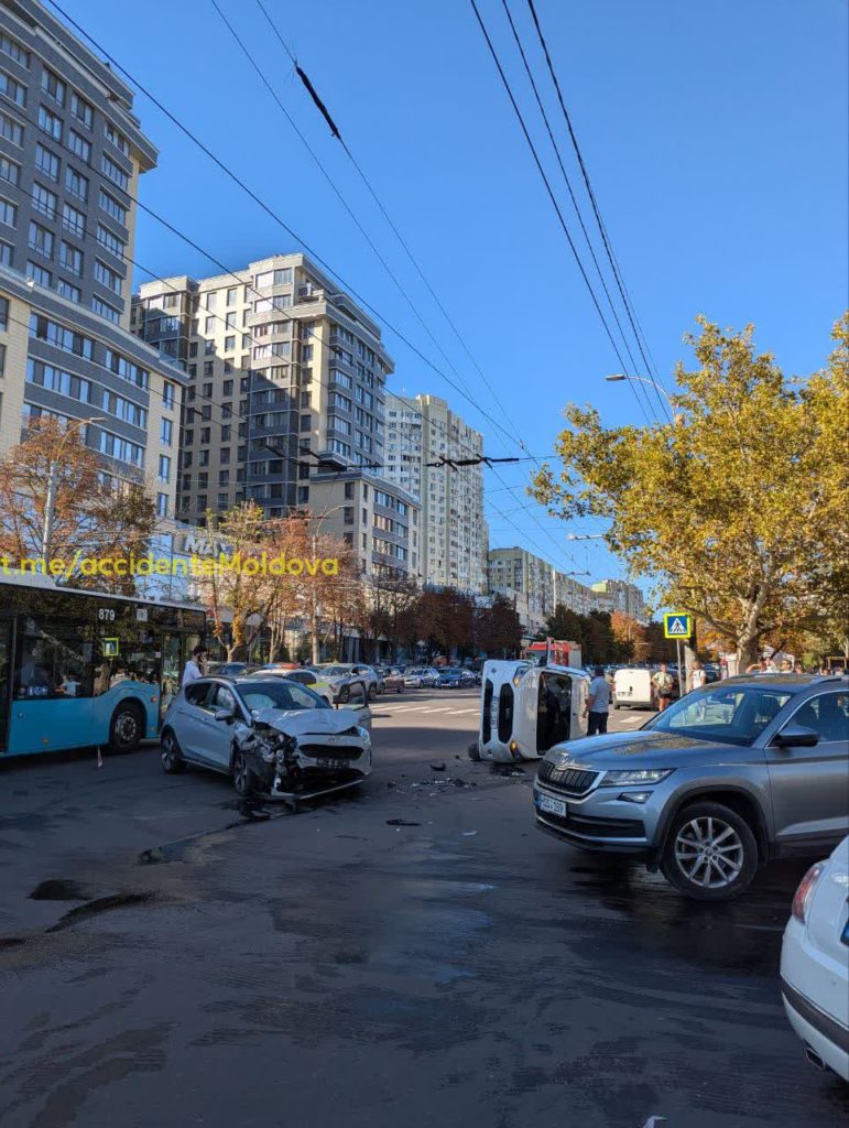 O femeie a ajuns la spital, după un accident produs pe o stradă din sectorul Rîșcani al capitalei. Totul s-a întâmplat în după-amiaza zilei de 16 septembrie. Două mașini s-au ciocnit, iar impactul a fost atât de puternic, încât una dintre ele a ajuns cu roțile în aer.
